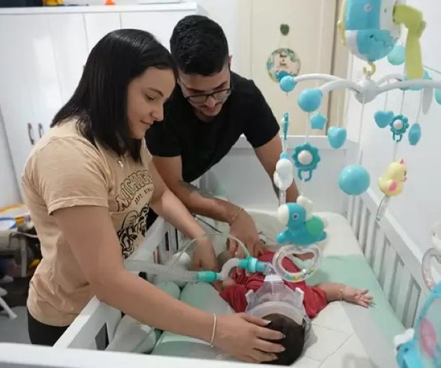 Pais se revezam para cuidar de bebê com doença rara que faz do sono um risco