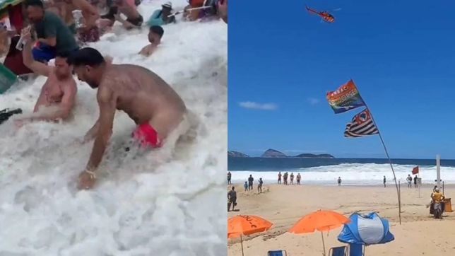 Ondas de até 3,5 metros de altura atingiram o litoral do Rio pela manhã. Nas redes sociais, circulam registros de ondas que atingiram o público na areia e arrastaram banhistas e seus pertences.