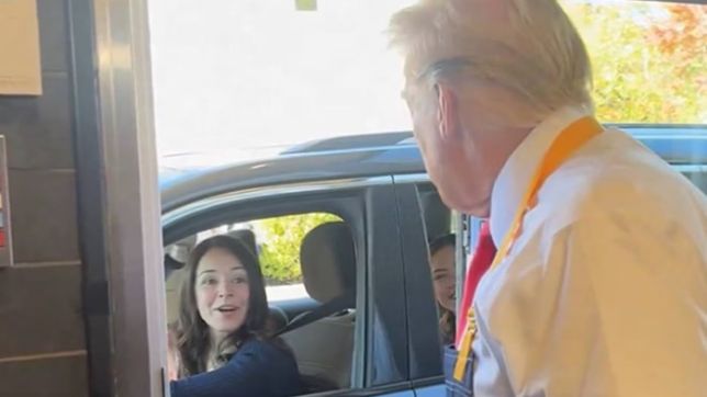 O momento foi registrado em vídeo pela equipe de Trump e compartilhado nas redes sociais. De avental e gravata vermelha, o republicano interagiu com funcionários do local e atendeu clientes no drive-thru.