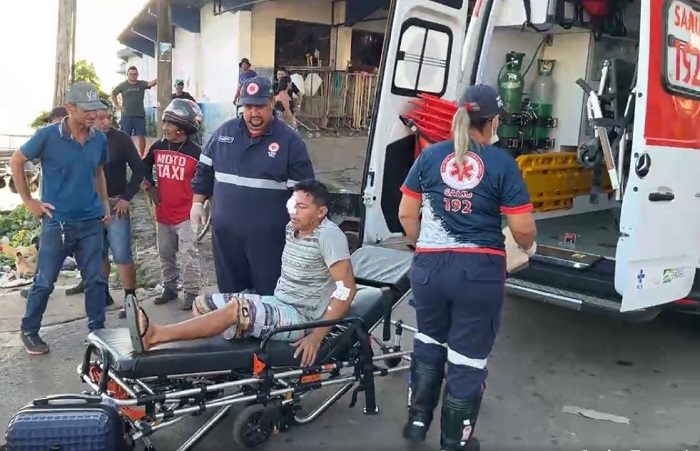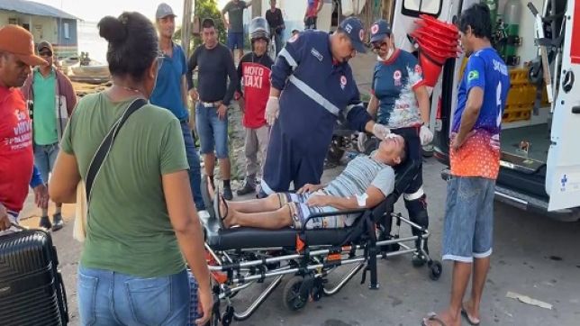 Caçador atingido com o disparo de arma de fogo no olho chega ao porto de Itacoatiara