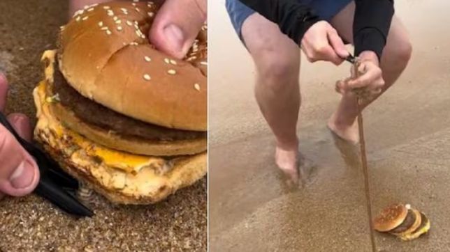 Caçadores de vermes de praia compartilharam um vídeo no Instagram, no qual capturam um desses anelídeos utilizando um cheeseburger.