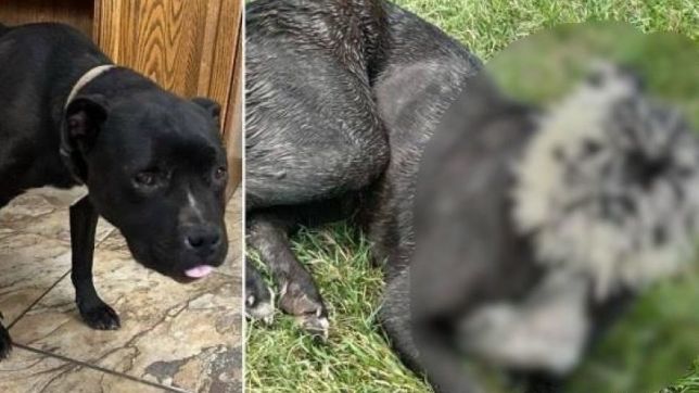 Após ter sido abandona, Brutus, um cachorro da raça Staffordshire bull terrier, de dois anos, acabou ficando com o rosto cheio de espinhos depois de tentar comer um porco-espinho quando estava procurando por comida.