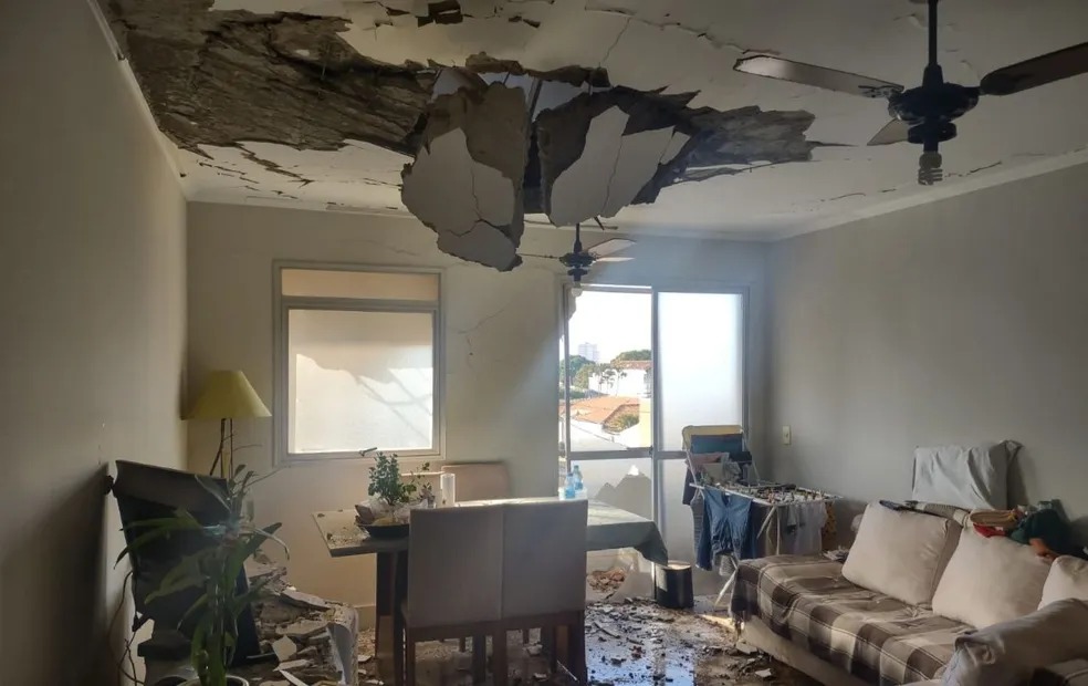A caixa d'água de um condomínio quebrou e caiu sobre um dos prédios na manhã desta terça-feira (11), no bairro Santo Antônio, em Birigui (SP).