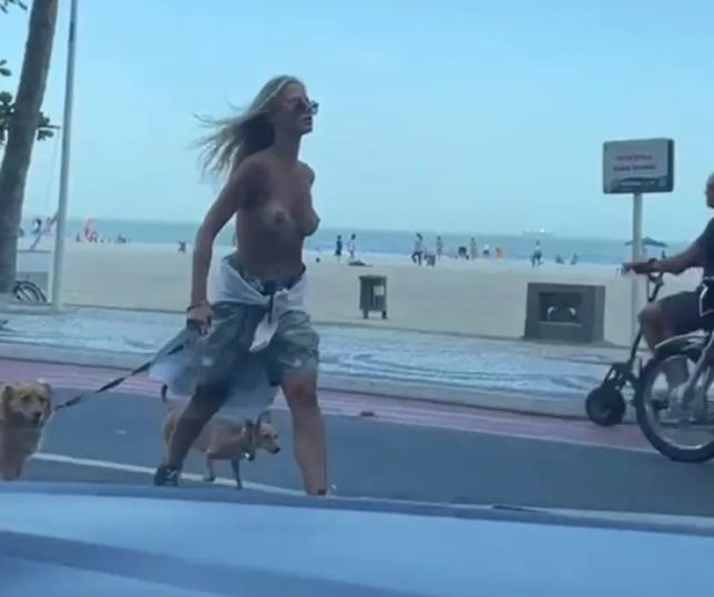 Mulher de topless é detida em Balneário Camboriú enquanto passeava com cachorros. VEJA VÍDEO