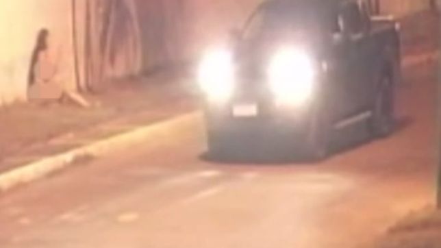 Câmeras de segurança da rua gravaram o momento em que a mulher está na rua e o carro do PM passa. É possível ver que ela se comunica com quem está no veículo e chega a tentar se proteger atrás de uma planta. Logo em seguida, cai no chão.