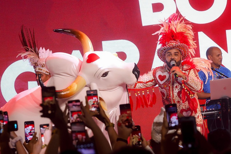 “Então a gente teve o momento dos dois juntos, os bois se apresentando ao som de 'O Amor está no Ar', depois, o boi Garantido com a sua icônica contagem e o boi Caprichoso com todo o envolvimento que tem dentro da arena”, explicou Denis que, dividiu a direção do espetáculo, com o levantador oficial de toadas do Caprichoso, Patrick Araújo, o apresentador do Garantido, Israel Paulain e o produtor musical, Pelado Junior.