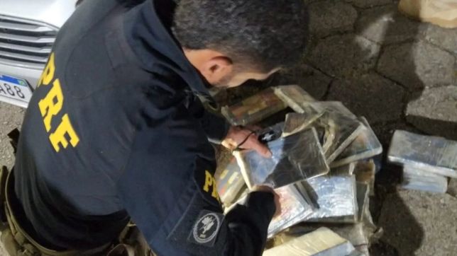 A droga estava em um carro com placas de Biguaçu, que foi abordado pela PRF. O passageiro tinha diversas passagens criminais. Com ajuda do cão farejador da Polícia Militar, diversos tabletes de cocaína foram encontrados no painel e nas caixas de roda do veículo.