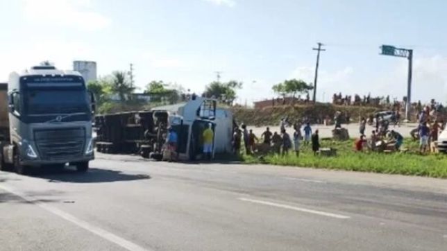 Uma carreta que transportava uma carga de biscoitos tombou na manhã deste domingo (25/2), na BR-101, no município de São Brás, interior de Alagoas. O motorista não sofreu ferimentos, mas as mercadorias foram saqueadas por populares.