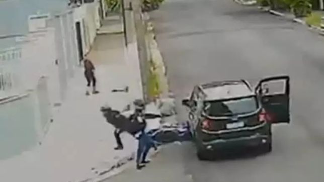 As duas mulheres caminhavam quando foram abordadas pela dupla de assaltantes. O veículo, uma Jeep Renegade, se aproximou da moto, estacionou na frente e deu ré até atropelar a dupla que praticava o assalto.