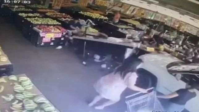 O local estava cheio no momento do acidente, que foi registrado pelas câmeras de segurança. Não há informações sobre o motorista e o motivo da invasão.