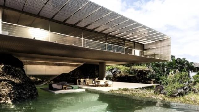 "Também nos inspiramos com a água, as pedras que nascem na mesma, foram fundamentais para o projeto, principalmente para a área da piscina", informou o escritório.