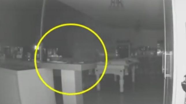A estranha gravação de 14 de janeiro mostra uma figura pálida que parece ter saído de um antigo armário para caminhar alguns metros ao lado do cão pastor australiano e, em seguida, "desaparecer" de forma repentina.