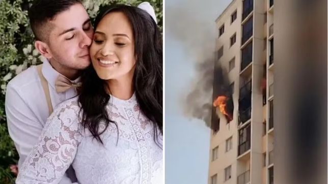 Casal foi identificado como Luiz Evaldo Lima e Graciane Rosa de Oliveira. Vídeo mostra chamas em prédio.