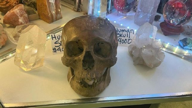 “Havia muitas coisas e livros estranhos, mas nenhuma pedra. Fiquei desapontada”, comenta a dona do antiquário. Mas ao vasculhar algumas caixas, em abril de 2023, encontrou a caveira. Ela sabia que era real porque frequentemente lida com fósseis, ossos e moldes de gesso.