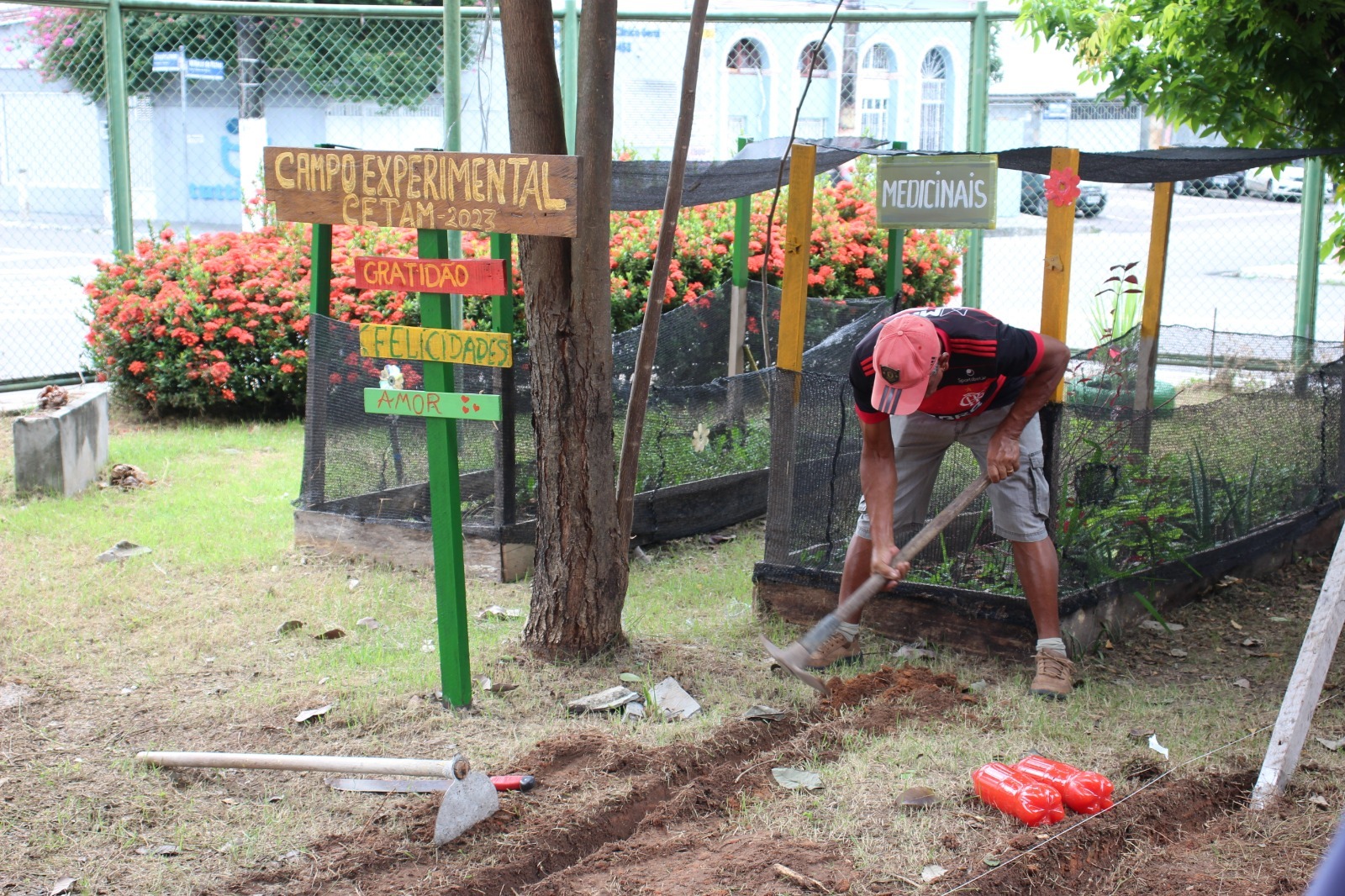 Enquanto os homens faziam os cercados das leiras, as mulheres se dedicavam à ornamentação do local, fazendo placas com frases de estímulo como amor, gratidão e felicidade. Participante do Projeto Mais Vida, Severina Bezerra de Souza, 79 anos, escreveu em sua placa a frase a respeito. “Há seis meses participo de sessões de fisioterapia para reduzir as dores nos joelhos, além de fazer hidroginástica, me sinto respeitada e amada nesse local, onde venho diariamente”, admite.