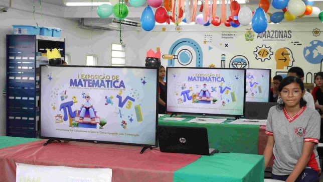 No Espaço Maker, alunos do 6? ano organizaram apresentações sobre as histórias da Matemática africana, grega, pré-colombiana, eurocêntrica, contemporânea e no contexto da civilização romana. O professor Dheimison Airton, que orientou os estudantes, destacou o trabalho de pesquisa realizado pelos discentes e a importância do evento para aproximar as turmas da Matemática, por meio do conhecimento científico.