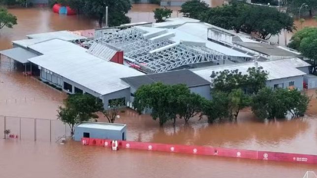 Em outro extremo da capital gaúcha, o CT Luiz Carvalho, do Grêmio, também sofre com os efeitos das fortes chuvas que atingem o Rio Grande do Sul desde o início da semana. A água atingiu o complexo gremista e inundou completamente a Rua João Moreira Maciel, onde fica a entrada do CT.