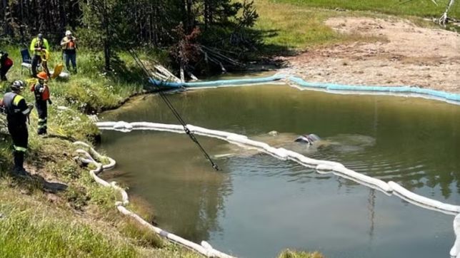 Cinco pessoas conseguiram escapar de um lago quente e ácido na seção de Wyoming do Parque Nacional de Yellowstone (EUA) depois que o veículo utilitário esportivo em que viajavam derrapar em estrada e cair num gêiser inativo, disseram autoridades locais.