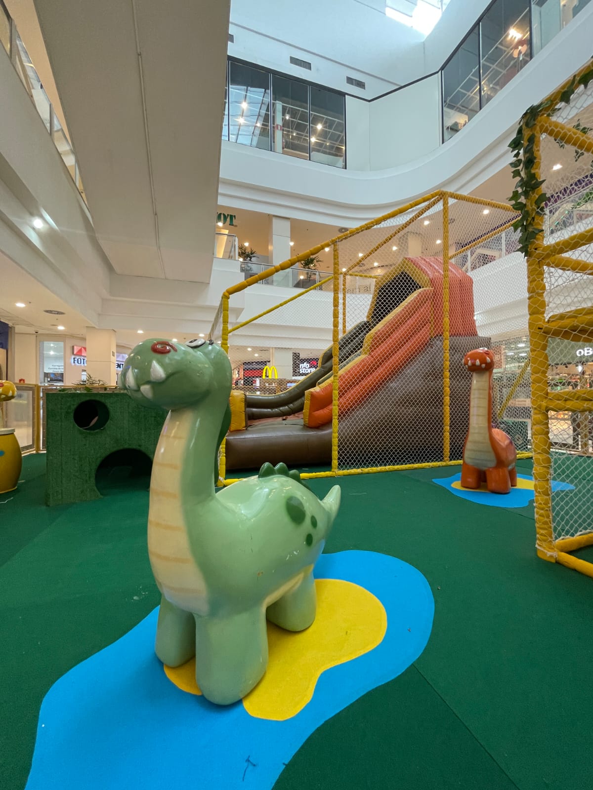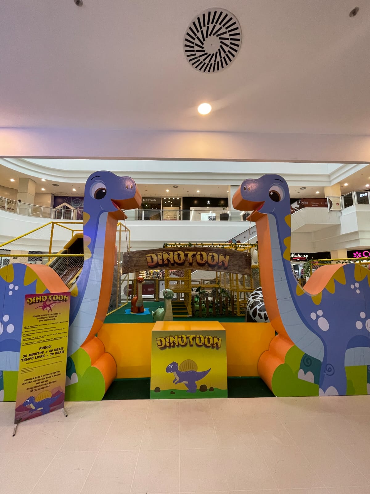 Com bonecos temáticos, o Dinotoon é um espaço seguro para as crianças se divertirem e se desafiarem, podendo ser frequentado por crianças de todas as idades.