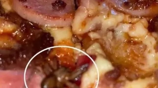 Uma mulher ficou horrorizada e furiosa depois de encontrar uma aranha morta "cozida" em pizza entregue na sua residência, em Feltham, oeste de Londres (Inglaterra).