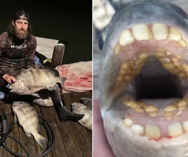 Americano fisga peixe 'com dentes humanos' de peso recorde