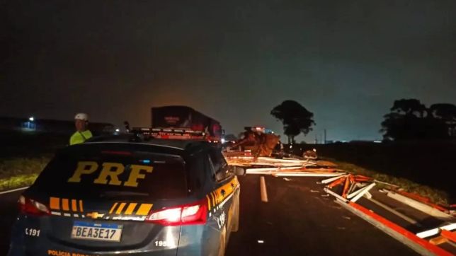 O socorrista Marcelo Pereira, do resgate voluntário ‘Parceiros da Vida’, disse à Banda B que uma carreta desgovernada bateu contra o carro e a outra carreta.