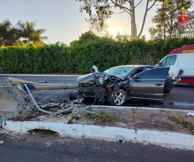 Motorista de 26 anos fica ferido após colidir contra poste