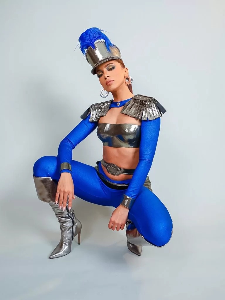 “Geralmente, penso a temática das fantasias do zero, fico totalmente livre para criar a partir de conversas com a Anitta. Mas ela trouxe agora o tema Guerreiras, buscando homenagear mulheres icônicas da história, o que exigiu muita pesquisa imagética e leituras”, conta a stylist à coluna.