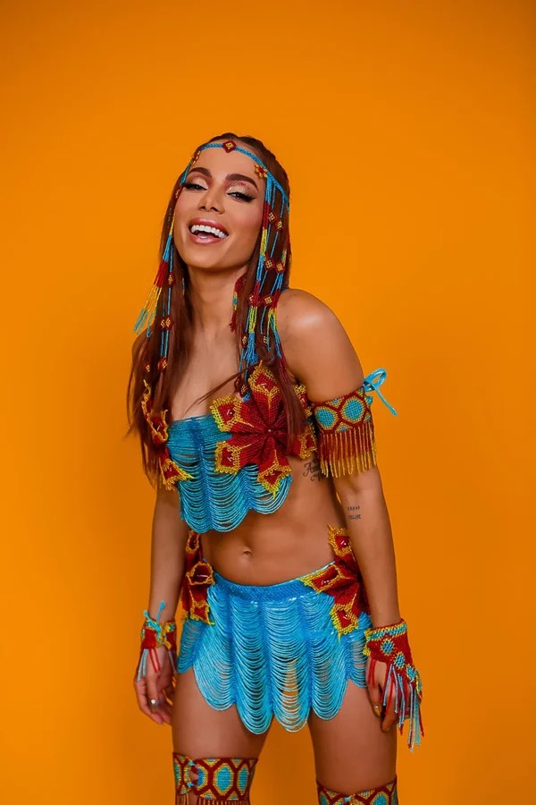 Em Recife (Pernambuco), Anitta homenageou Cabocla Jurema, entidade espiritual da umbanda. Com o figurino, criado por artesãs indígenas, ideia foi celebrar a religiosidade afrobrasileira. “Esse look me enche de orgulho, porque a história dela fala muito sobre força. Sempre sonhei em homenageá-la de alguma forma.