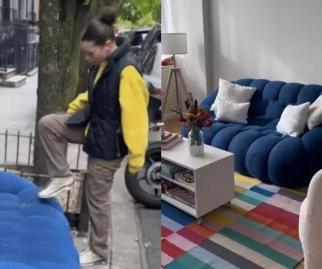 Mulher encontra sofá de R$ 40 mil jogado na rua e leva móvel para casa