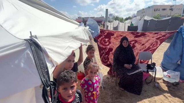 “Nossos filhos sofrem muito à noite. Choram a noite inteira, urinam em si mesmas sem querer e eu não tenho tempo de limpar”, disse Tahreer Tabash, mãe de seis filhos, abrigada em uma escola.