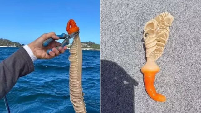 Um pescador de Victoria (Austrália) ficou completamente perplexo quando puxou uma criatura bizarra para fora da água.