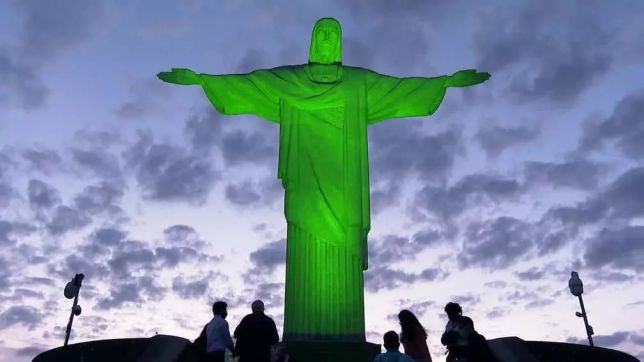 O monumento ao Cristo Redentor, no Rio de Janeiro, recebeu na noite deste domingo (10) uma iluminação especial em tons de verde para alertar sobre riscos dos cigarros eletrônicos - também conhecido como vapes ou pods.
