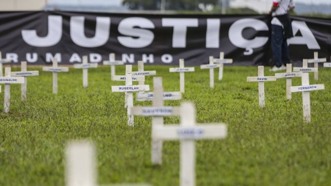 Em cada cruz colocada diante do Congresso foi escrito o nome de uma das pessoas mortas com o rompimento da barragem I (B1) – evento que causou o rompimento de outras duas barragens (B-IV e B-IV-A) da mesma mina e, segundo o governo de Minas Gerais, despejou aproximadamente 12 milhões de metros cúbicos de rejeitos que, além da área ao redor, atingiram rios, cursos d´água e afetaram ao menos 26 cidades, causando prejuízos ambientais e socioeconômicos para todo o estado.