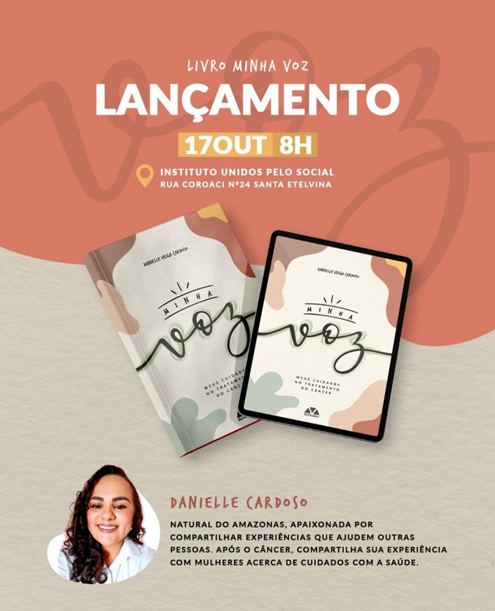 Danielle Veiga Cardoso, natural do Amazonas, prepara-se para o lançamento de seu inspirador livro “Minha Voz”, no próximo dia 17 de outubro, às 8h, no Instituto Unidos Pelo Social (IUPIs), em Santa Etelvina, Manaus. O evento será gratuito e promete trazer uma abordagem transformadora sobre o autocuidado, fruto de sua experiência pessoal com o câncer.