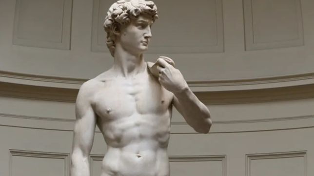 A estátua de Michelangelo mostra David antes do confronto com Golias, segurando esse “estilingue”. É uma das obras mais importantes de toda a história da arte, está em exposição permanente na Galleria dell'Accademia e é uma das principais atrações de Florença.