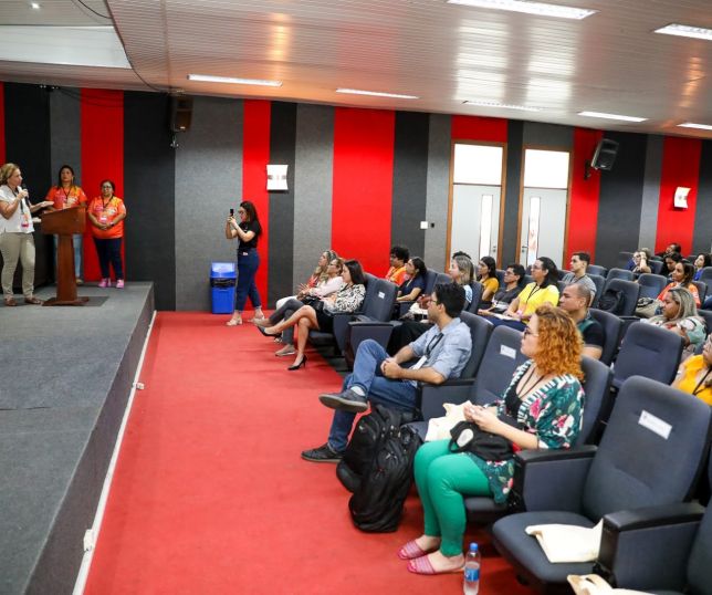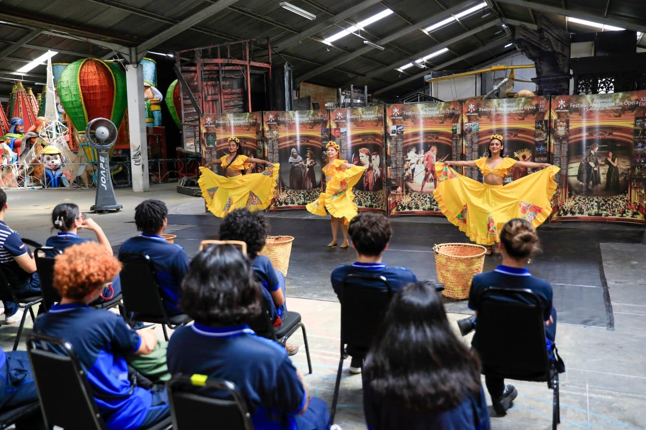 No início da manhã, os alunos realizaram a visita guiada por todo o local, conhecendo cada corredor, cenário e a equipe que produz os artefatos que dão vida aos espetáculos. A mediadora da visitação foi a coordenadora da CTP, Cieny Farias, que comentou sobre a relevância da programação.