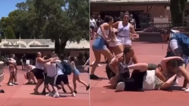 Depois da recusa e de muitos xingamentos, os socos começaram a voar enquanto os espectadores chocados filmavam. Membros das famílias foram jogados no chão e espancados em frente ao jardim comemorativo dos 100 anos da Disney.