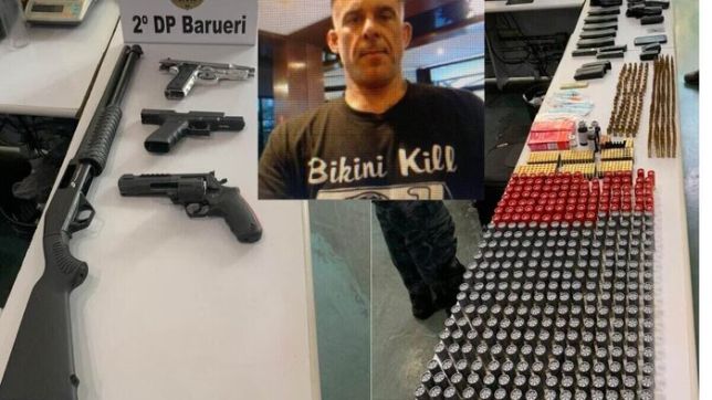 Imagens obtidas pelo Metrópoles mostram (veja galeria acima) que Carlos mantinha em um de seus endereços um escopeta calibre 12, duas pistolas, um revólver, além de centenas de munições, de diversos calibres. A Secretaria da Segurança Pública (SSP) de São Paulo não confirmou se ele conta com posse ou porte de arma, além do registro dos armamentos apreendidos, até a publicação desta reportagem. O espaço segue aberto.