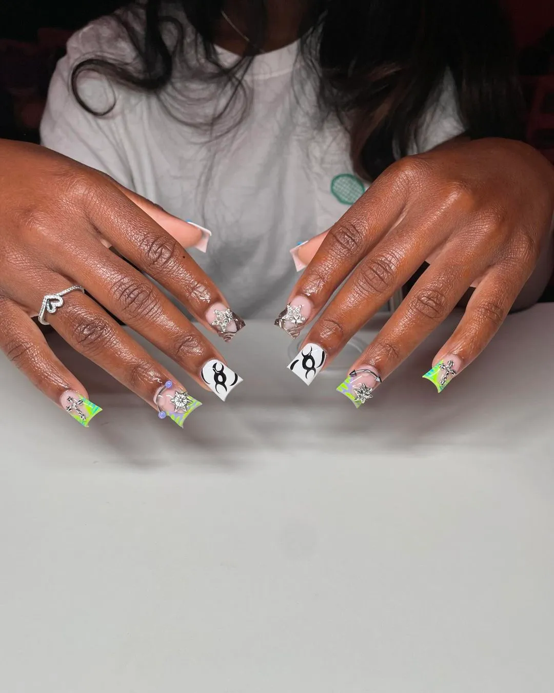 “Mais tarde, o estilo se transformou em uma tendência que só famosas usavam , como Paris Hilton e Pamela Anderson . Hoje, voltou a ser popular graças a busca por unhas cada vez mais exageradas , com estampas coloridas e em formatos nada tradicionais”, explica a designer.