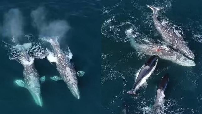 Um grupo de 30 orcas atacou uma dupla de baleias-cinzentas adultas na costa da Califórnia, nos Estados Unidos. O embate, que durou cerca de cinco horas, foi registrado por meio de um drone que sobrevoou o ataque feroz.