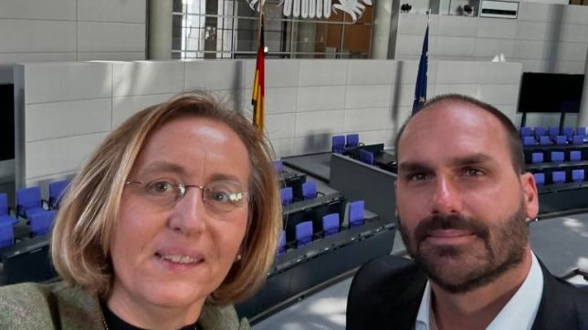 Beatrix von Storch também reproduziu as fotos em sua conta na rede, chamando Eduardo Bolsonaro de "amigo", e dizendo que patriotas como eles "estão juntos pela defesa da democracia, da liberdade e do Estado de Direito".