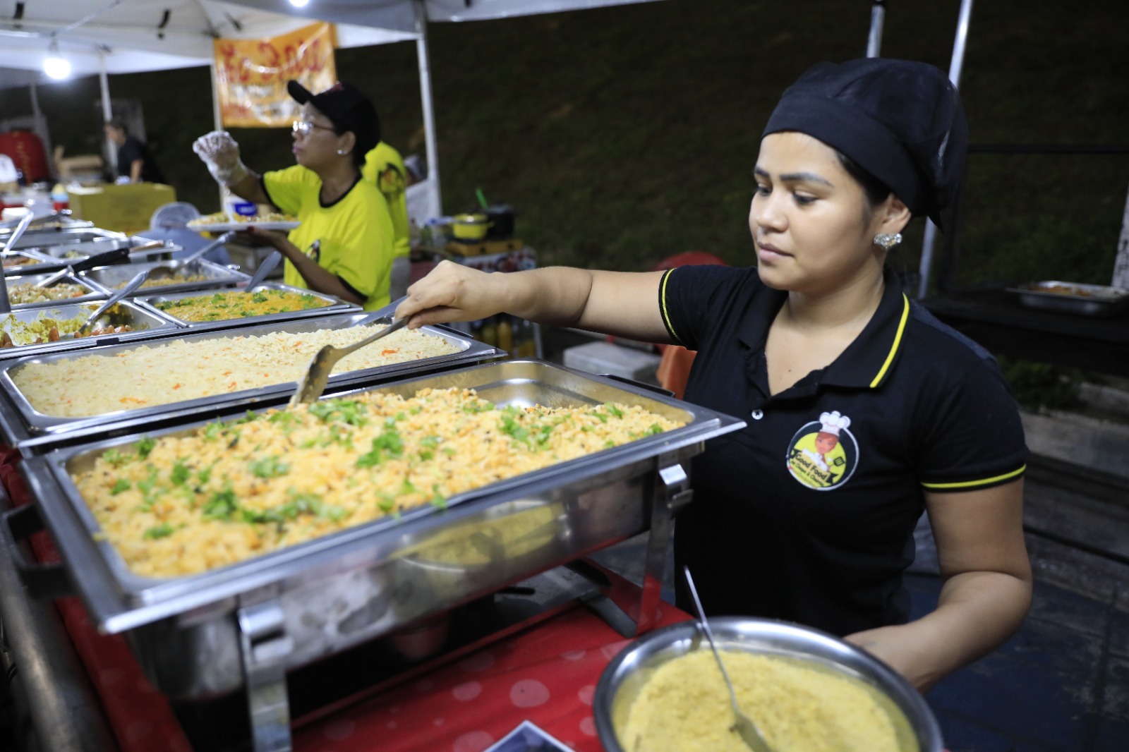 Na praça de alimentação, 40 barracas de comidas típicas atendem a todas as preferências. A autônoma Ericka Carneiro, 29, assina mais de 30 receitas juninas e regionais. Ela não só prepara, como também comanda uma das maiores barracas do festival, além de empregar, pelo menos, seis pessoas. “Tá sendo muito bom, melhor que no ano passado. Ainda temos até quarta-feira e já conseguimos tirar um bom lucro”, comemora a autônoma, moradora do bairro Japiim, zona sul. “Por noite, conseguimos vender cerca de R$ 1.400, o que já é muito bom”, completa Adriana.
