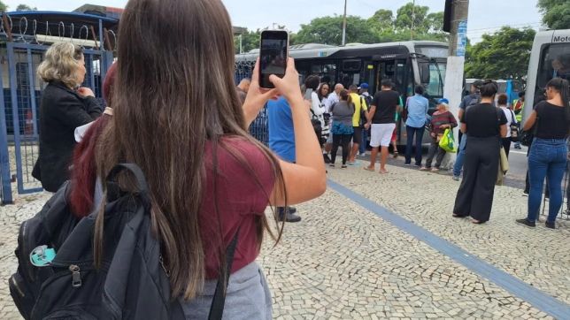 Crislaine Santos não fez vídeo, mas tirou fotos da confusão. “Eu estou aqui desde as 7h e não tem condição de pegar ônibus”, diz a jovem, que mora em Diadema, na Grande São Paulo, e trabalha no Sacomã, zona sul da capital.