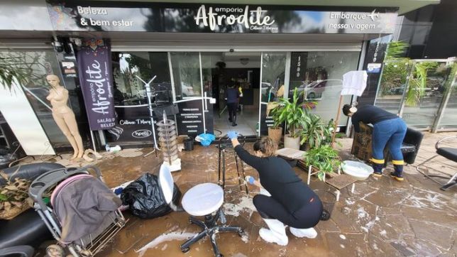 Cláudia Garcia, proprietária do Studio 763, na Cidade Baixa, conta que embora o local não tenha sido diretamente atingido pelo nível do Guaíba, as ruas adjacentes ao salão de beleza ficaram alagadas, deixando o local sem energia, sem água e sem acesso.