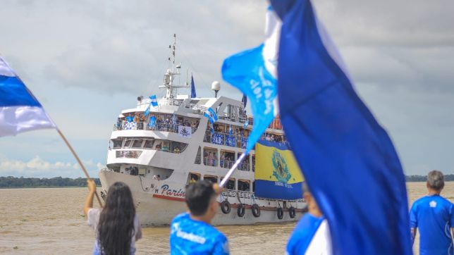 Mantendo a tradição iniciada na década de 90, mais de 250 torcedores do Boi Caprichoso chegaram à Parintins, na sexta-feira (26/04), na Caravana Azulada.