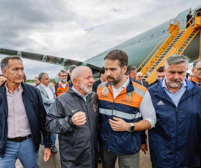 Lula atribuiu os estragos a “pessoas que não cuidaram das comportas” e disse que tratará dessa questão no futuro. “Nós vamos tentar apresentar a nossa contribuição ao povo do Rio Grande do Sul, inclusive apresentando uma discussão nacional sobre a questão de resolver definitivamente as enchentes na cidade de Porto Alegre e na região metropolitana”, garantiu.