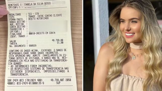 Cheguei em casa, tentei fazer a devolutiva do valor exorbitante, mas automaticamente bloquearam a minha conta", contou Isabela.Após o bloqueio, Isabela conta que entrou em contato com os canais de atendimento do banco em que a quantia foi recebida, mas que a solução só foi resolvida de fato na agência física.