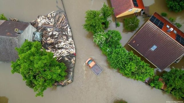 Fortes chuvas alagam cidades na Baviera e em Baden-Württemberg, provocam rupturas de barragens e obrigam milhares a deixar suas residências. Um bombeiro morreu durante operação de resgate, e outro está desaparecido.