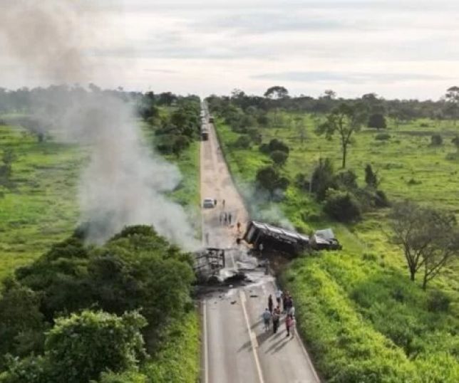 Acidente entre quatro veículos acaba em incêndio e 2 mortes na MS-276